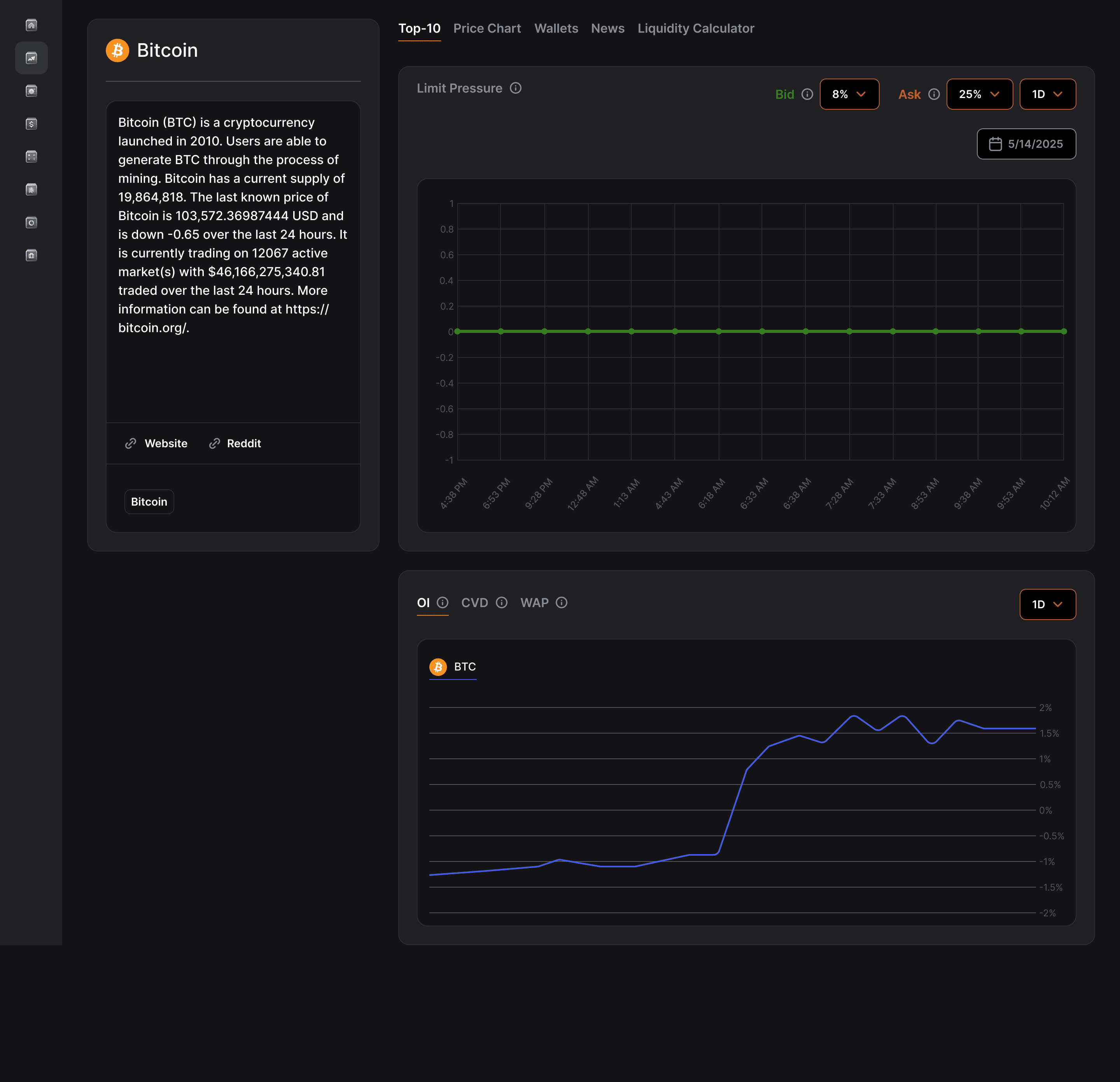 Collapsed tabs for Wallets / Liquidity / News to reduce vertical scroll.