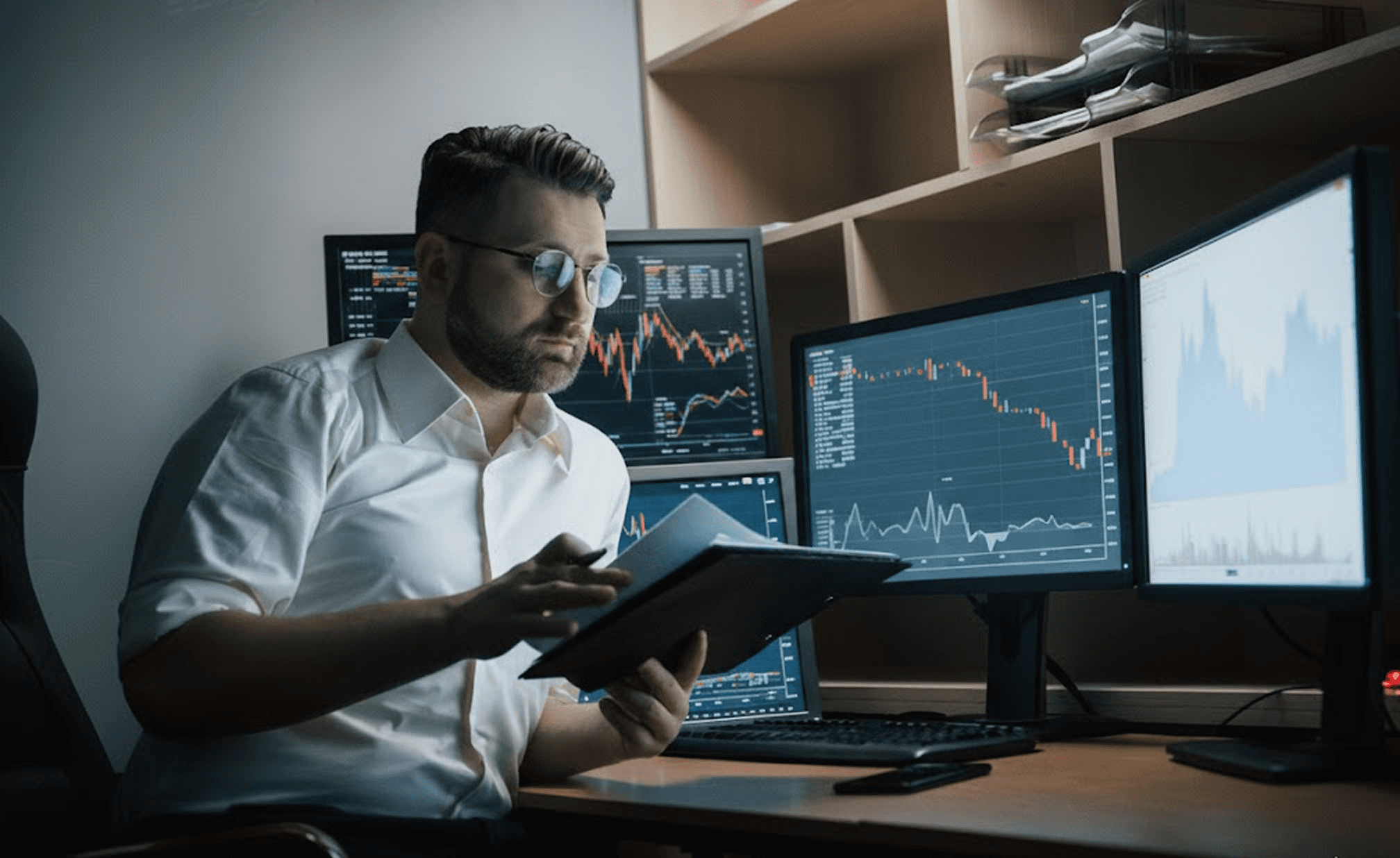 Controlled color use (e.g., muted greens/reds for directional indicators, blues for neutrality).