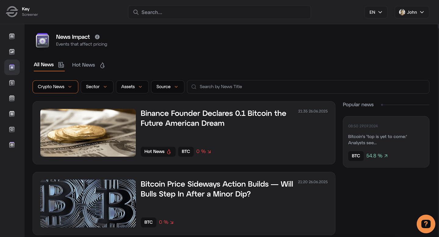 Key Screener compresses time-to-insight. It turns fragmented crypto data into structured, decision-ready signals — helping professionals act faster, with more confidence, and less noise.