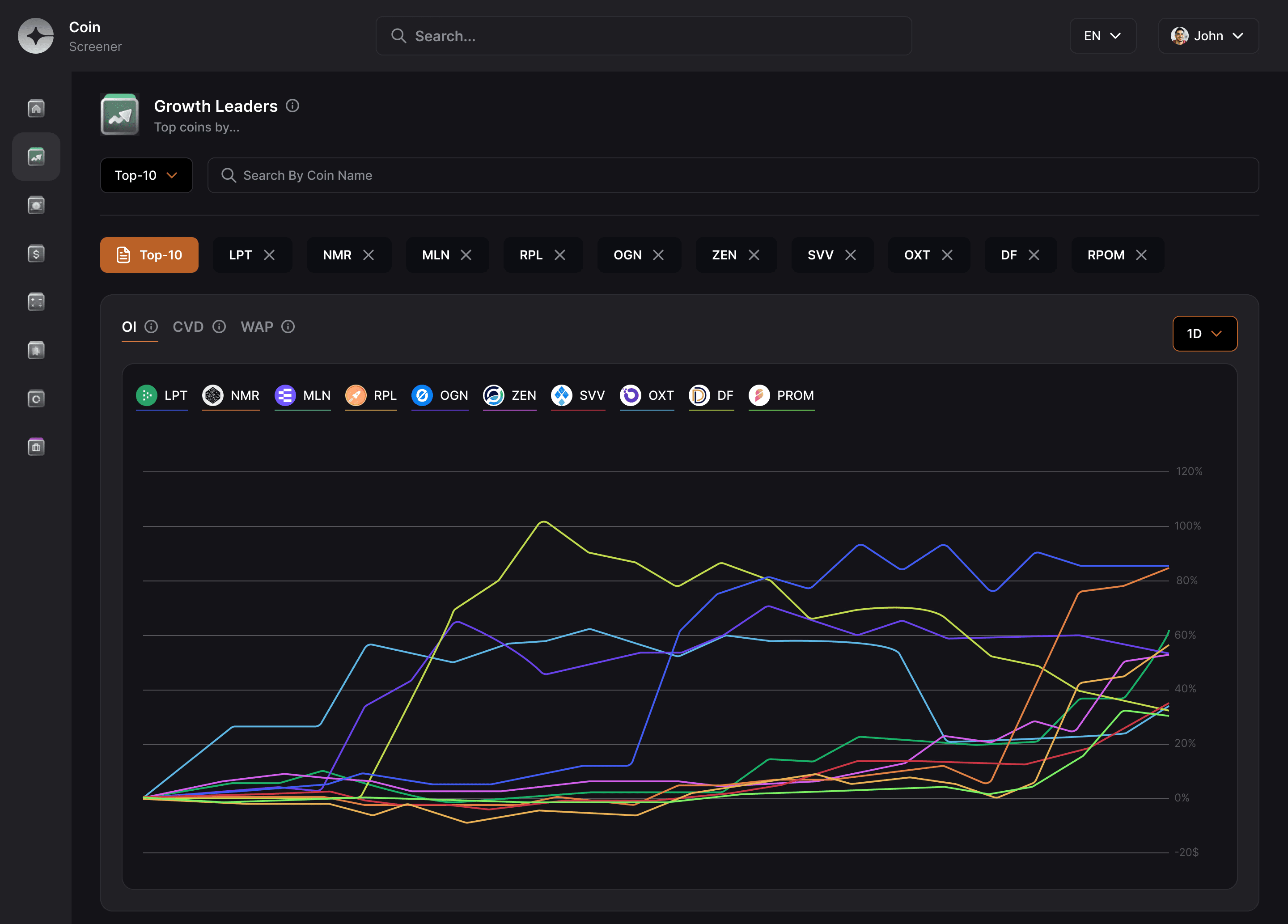Identify which tokens are outperforming peers across short-term and mid-term horizons, then isolate those with sustained structural momentum.