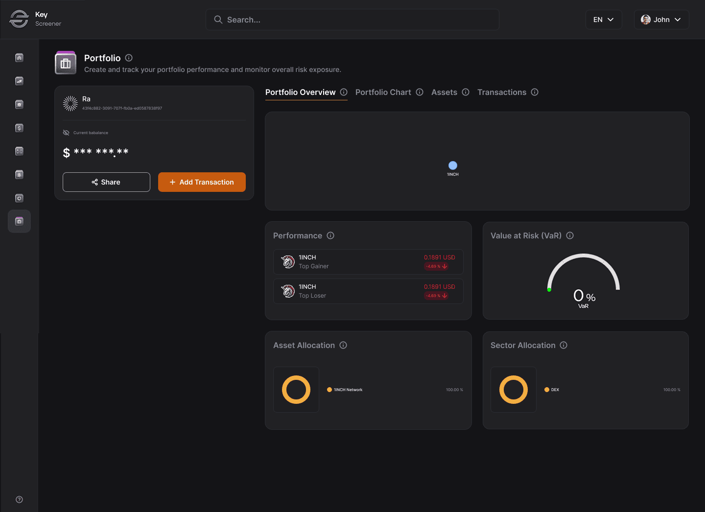 Traders want risk awareness, not just balance tracking. This view shows sector exposure, value-at-risk, and position effectiveness — giving clarity without requiring third-party tools.